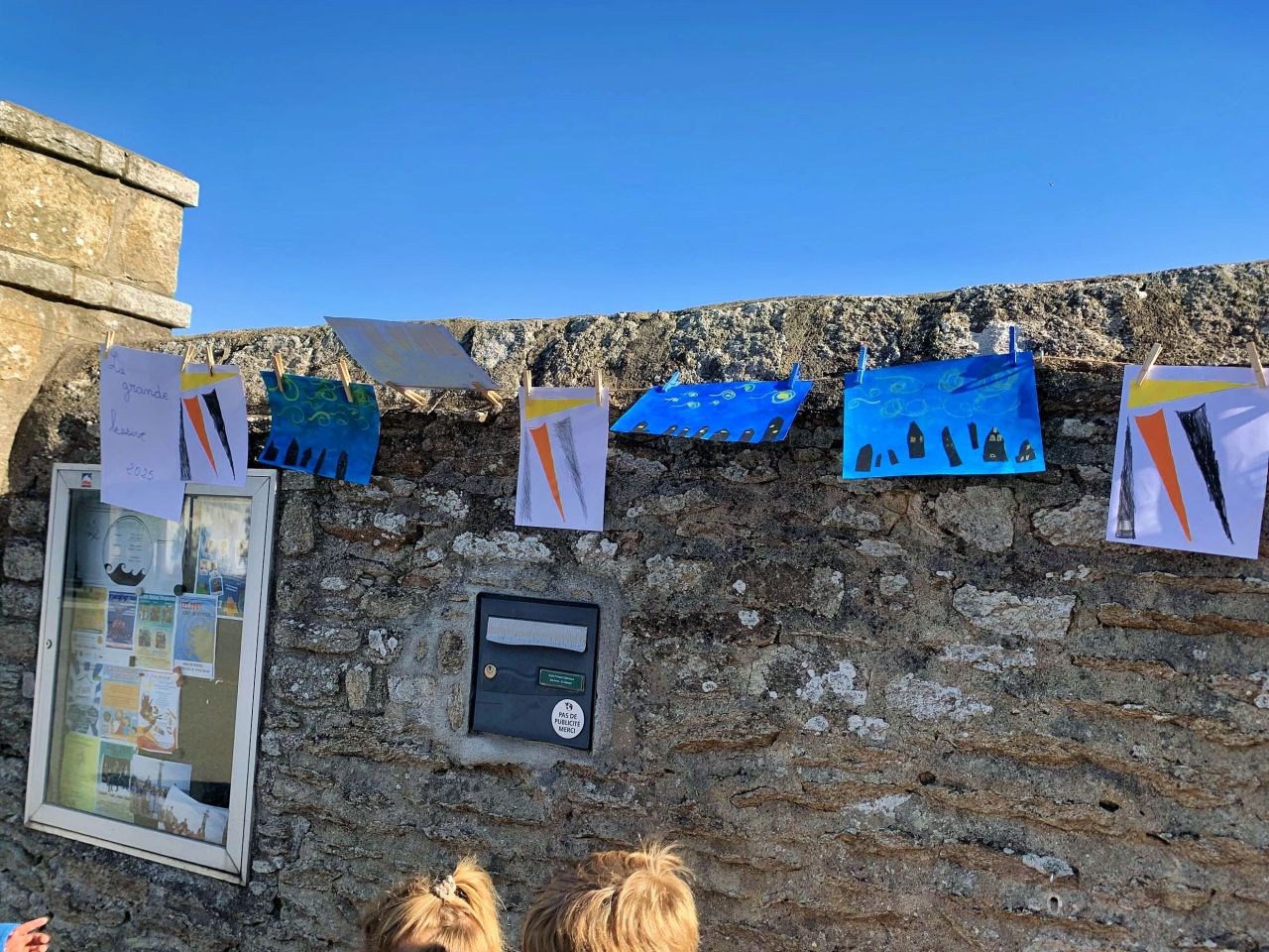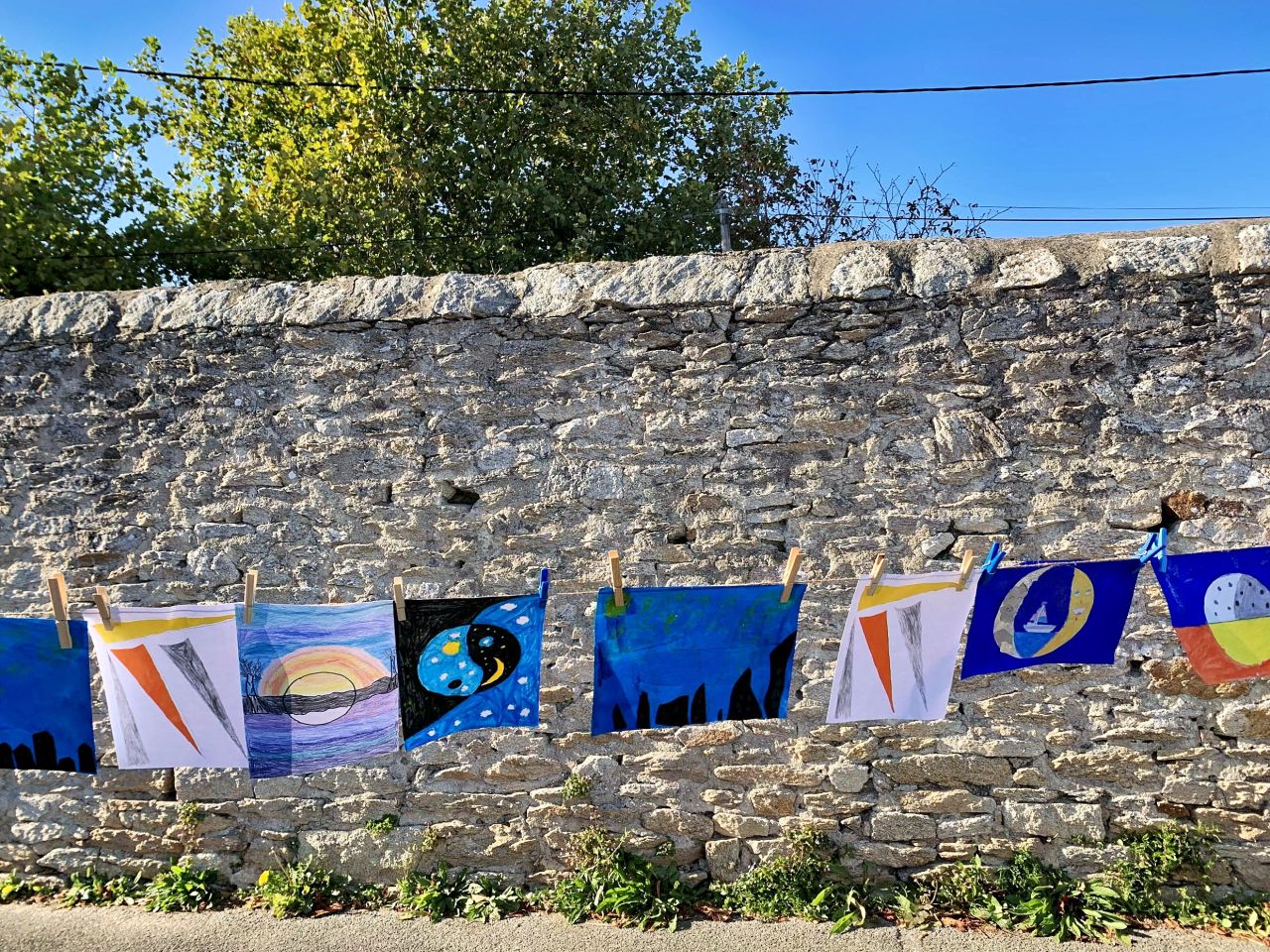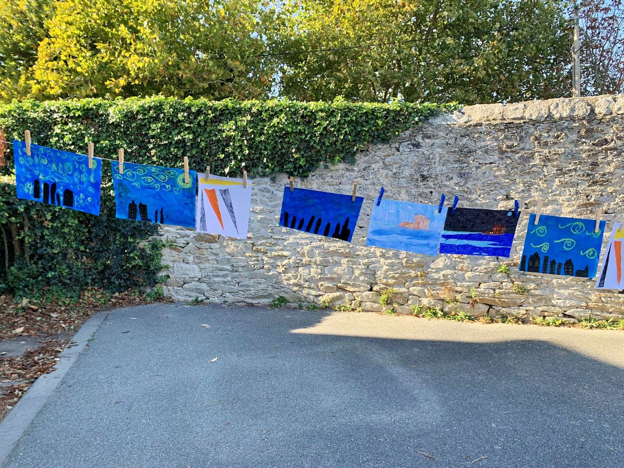 Les élèves ont créé des oeuvres en format A4. Nous les avons exposé à l'extérieur pour ouvrir l'école à l'art.