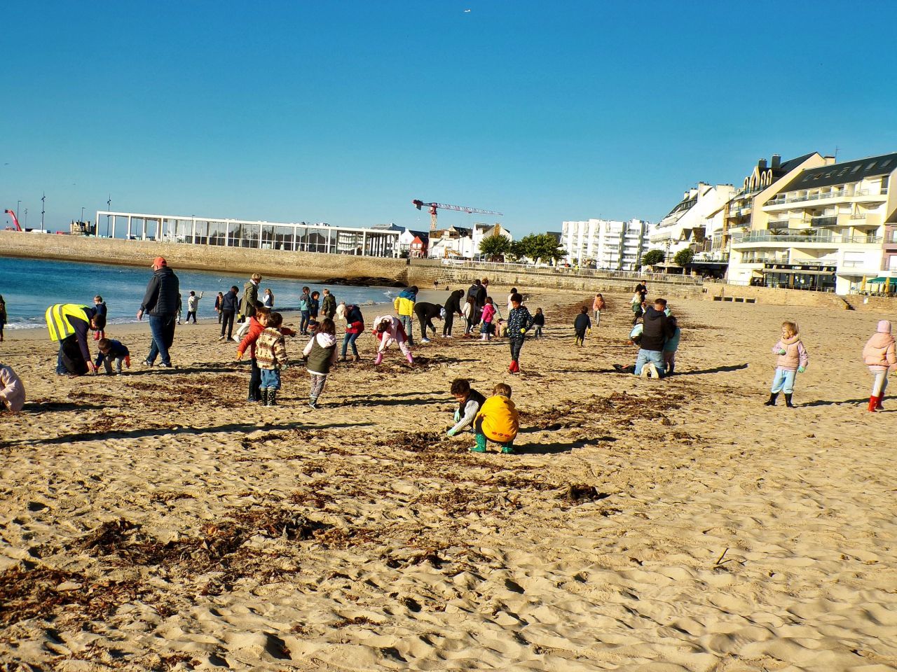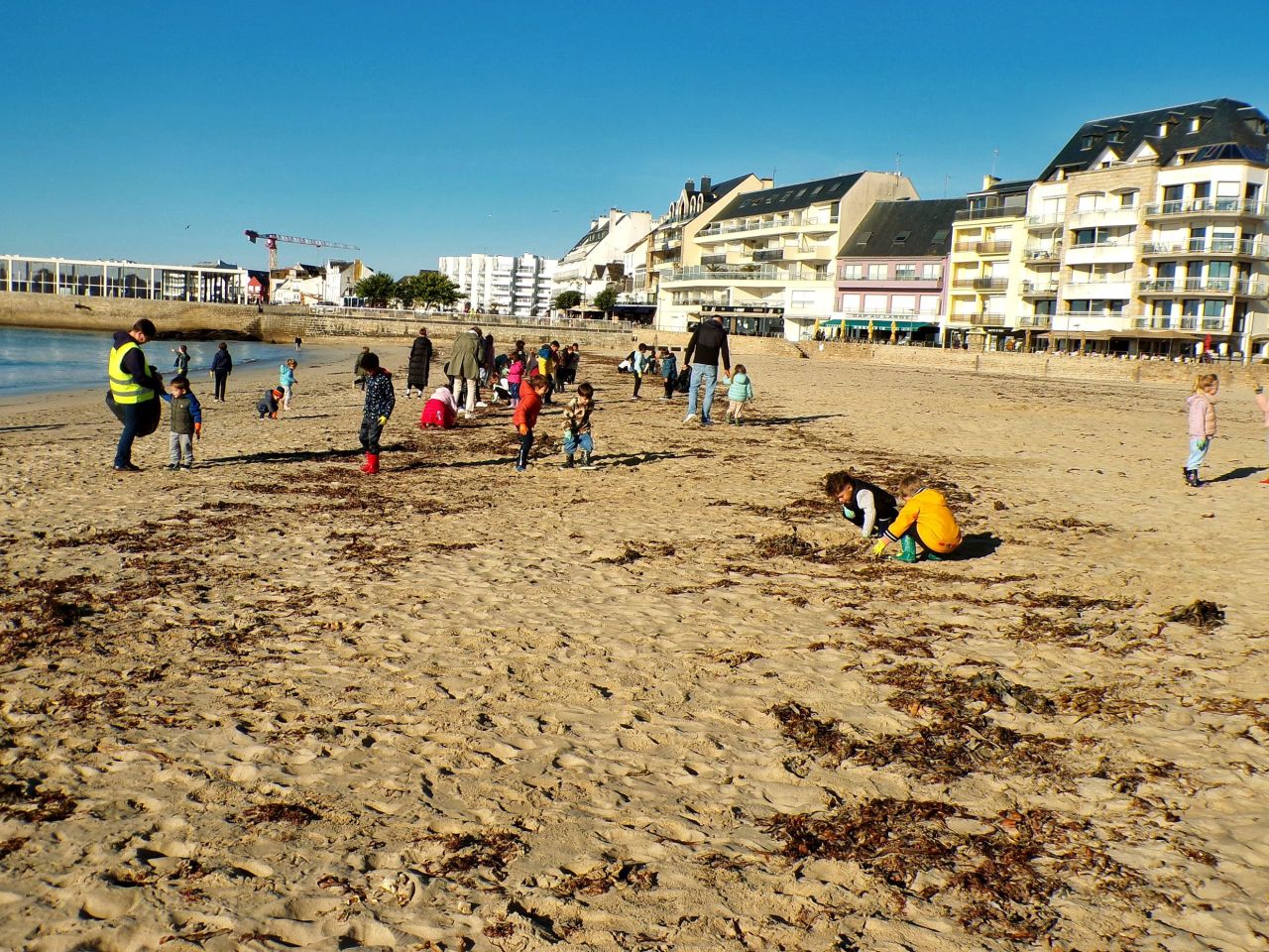 Toute l'école est allé à la grande plage pour une opération plage propre.
