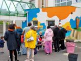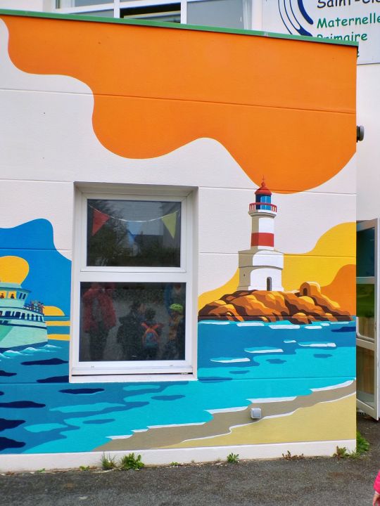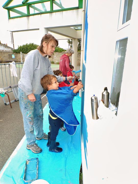 Les enfants ont participé à la peinture de la mer, la plage, lalande.